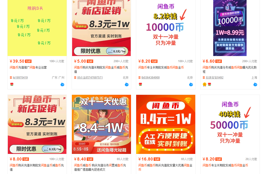 互联网上很多做闲鱼培训的,他们的学员估计都没有足够的闲鱼币,所以这是个好商机。