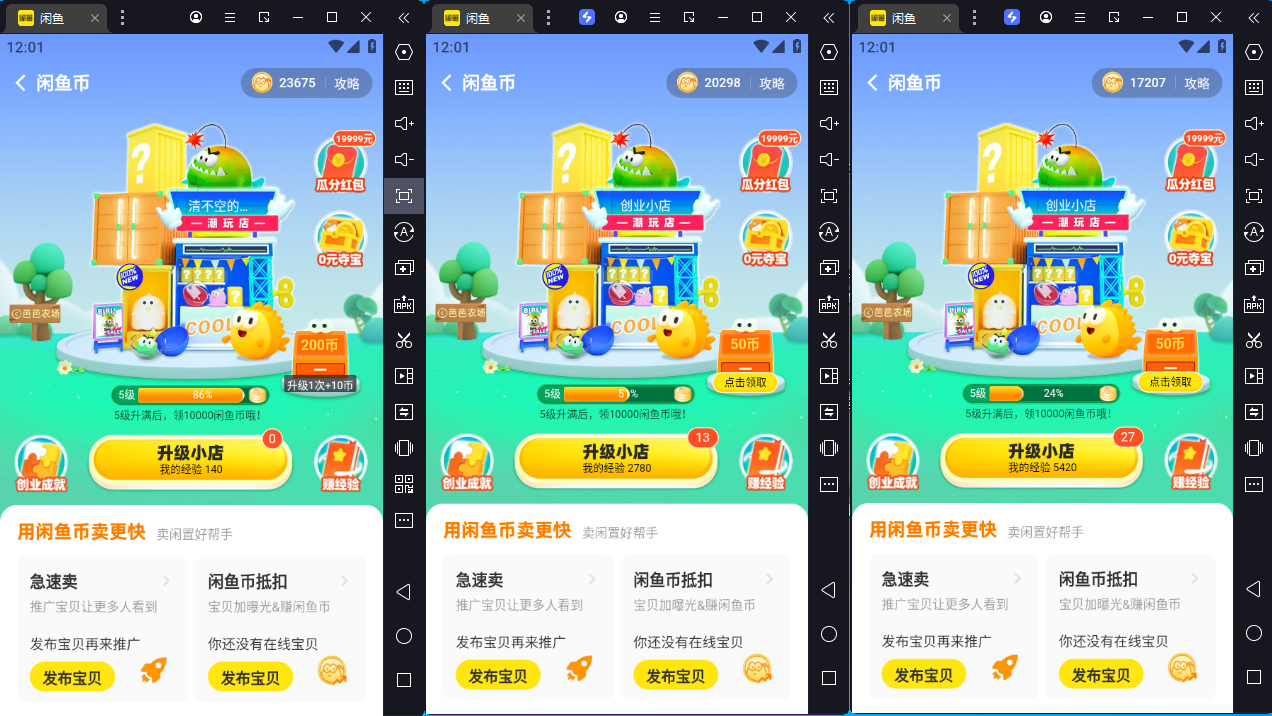 在咸鱼首页那里有一个签到领咸鱼币的入口,点进去后,有个升级闲鱼小店(赚经验),里面有很多任务,每天都能完成的话差不多能够领到800左右的闲鱼币。
