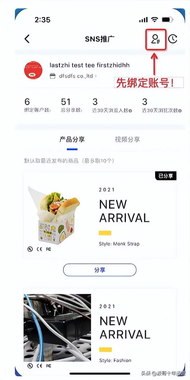 点击阿里卖家右上角账号绑定,先去绑定账号,流程和电脑端操作一致。(绑账号过程需客户自行保证海外网络连接畅通, 绑定成功后,分享操作不必连接海外网络