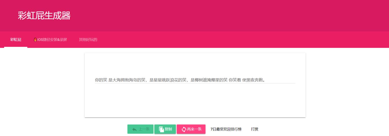 彩虹屁生成器:https://wejizan.com/