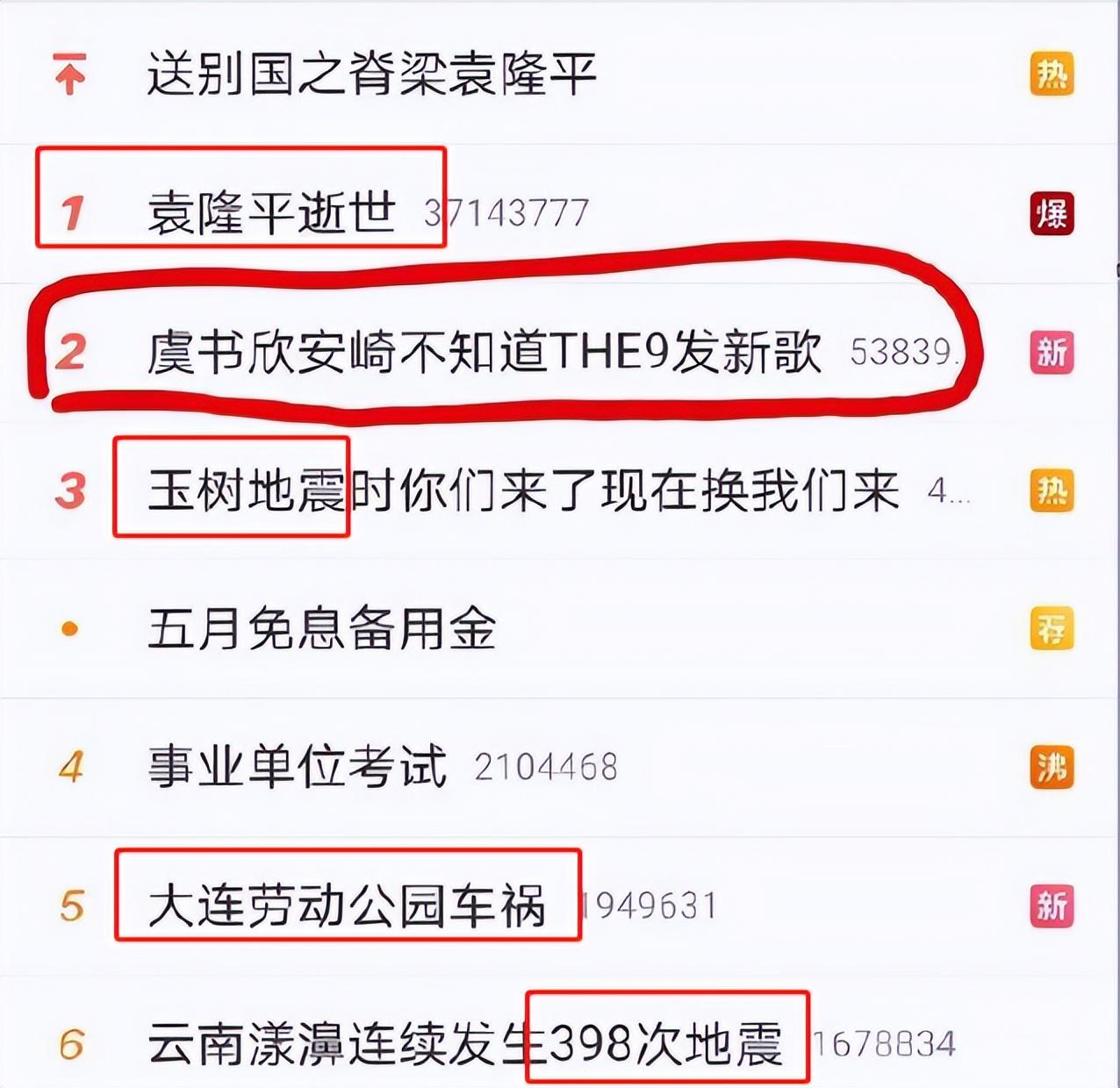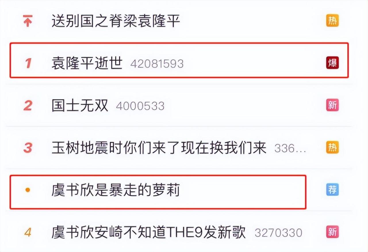 2021年5月22日,袁老因病逝世,但挂在热搜第二位的却是:虞书欣安崎不知道THE发新歌。