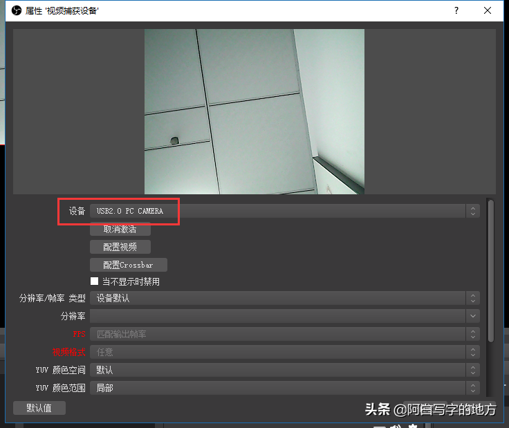 4)视频捕获设备,当前电脑有摄像头,OBS软件可以自动获取: